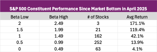 It’s worth noting that while markets have rallied since the April Liberation Day lows earlier this year, the recovery has been uneven. Much of the upside has been driven by higher-beta names, while many lower-beta counterparts have remained largely flat, contributing little to the advance. As Jamie Dimon, CEO of JPMorgan Chase, recently remarked, “when you see one cockroach, there are usually more,” suggesting that concerns in the regional banking space are rarely isolated. Against that backdrop, we could see a mean reversion trade begin to unfold, with investors rotating toward lower-beta stocks as they seek shelter from potential turbulence. Even in the absence of a market sell-off, momentum in high beta stocks can’t continue forever.
