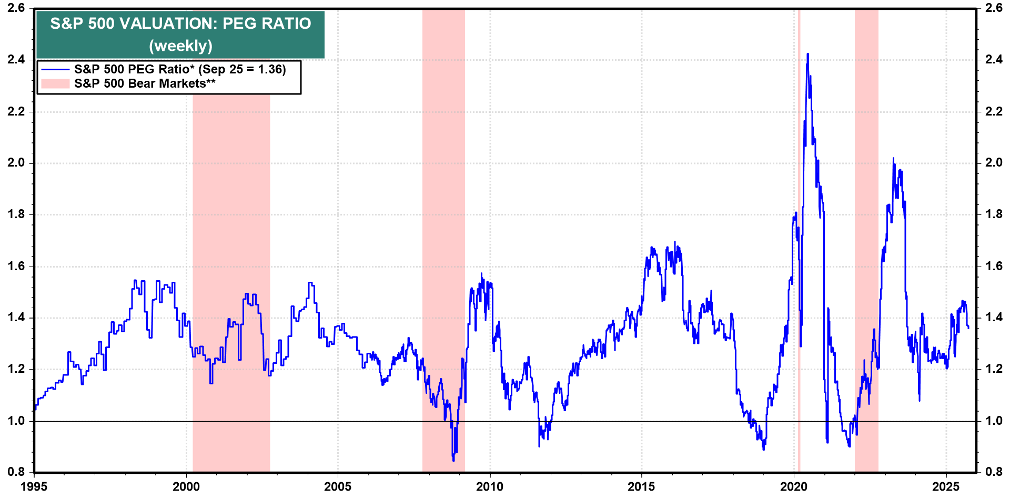 *Forward P/E divided by LTEG, which is 5-year forward consensus expected annual earnings growth. Monthly through 2025, then weekly.